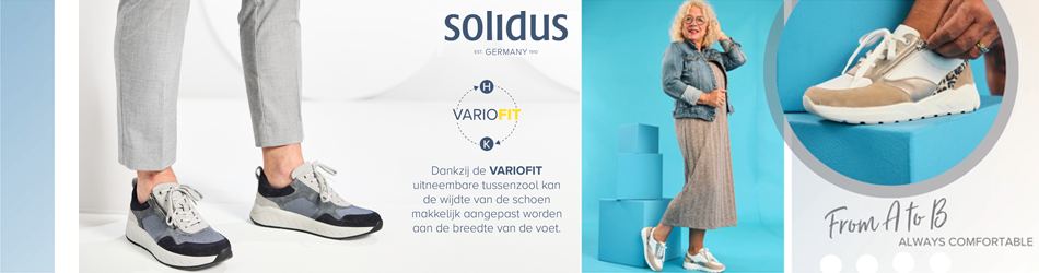 Op zoek naar trendy comfortschoenen voor dames? Bij Solidus vindt u een groot aantal chique schoenen voor inlegzolen. Of u nu op zoek bent naar modieuze schoenen voor inlegzolen of schoenen met klittenband of sandalen voor inlegzolen, Solidus is de specialist voor schoenen met binnenzool. Zelfs als u op zoek bent naar brede schoenen of sandalen voor inlegzolen dan is dat geen probleem, want Solidus heeft schoenen en sandalen in breedte H tot K.